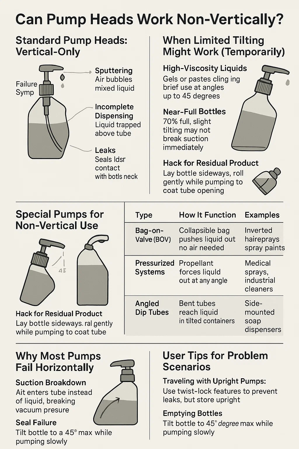 중력 의존적 설계 : 딥 의존 설계 : 딥 튜브는 병의 바닥에 액체를 풀어야합니다. 기울어지면 흡입이 중단되어 공기 흡입 또는 드라이 펌핑이 발생합니다.